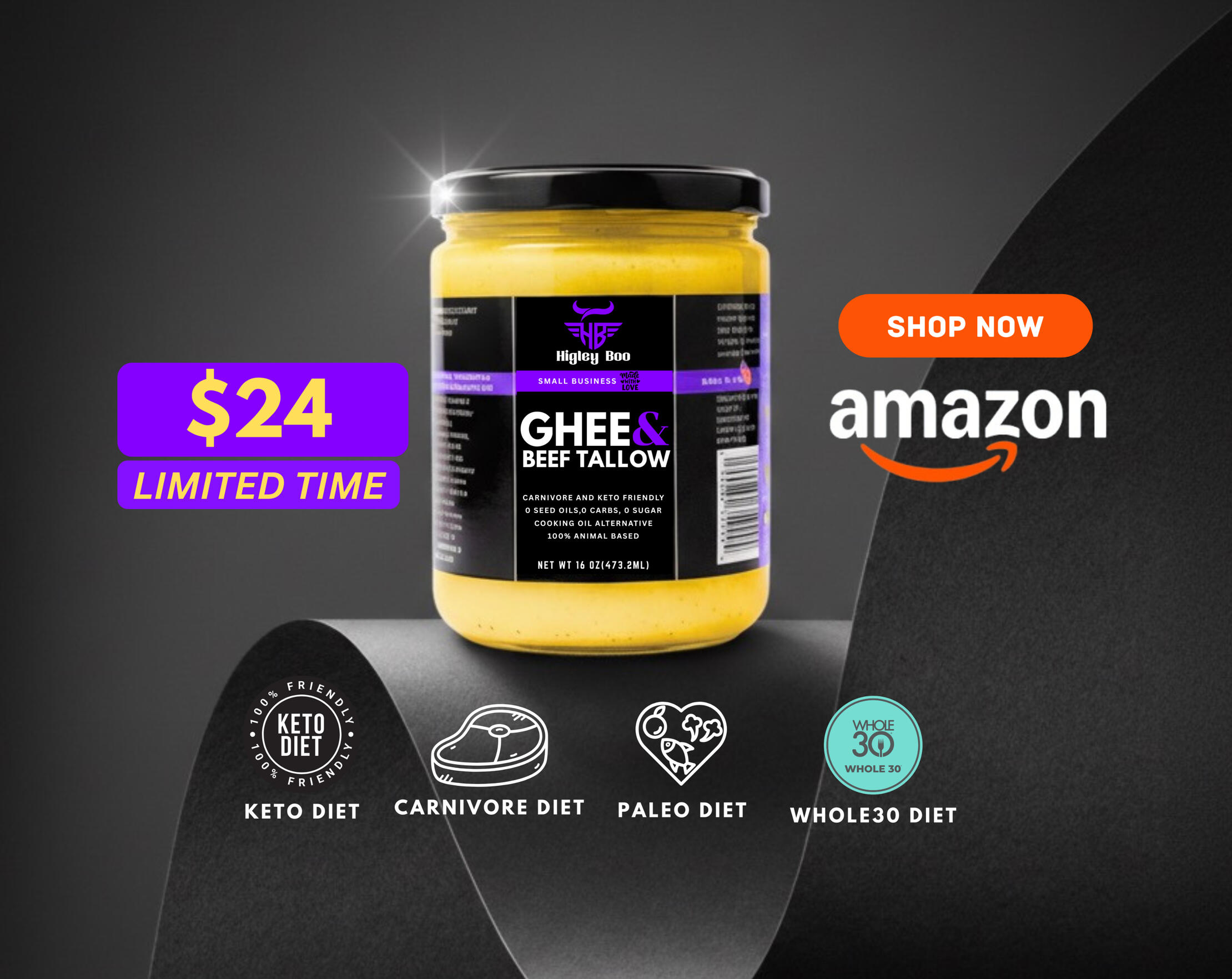 Grab your Higley Boo Premium Ghee and Beef Tallow jar for just $24 (regularly $29), Order today and save $5.