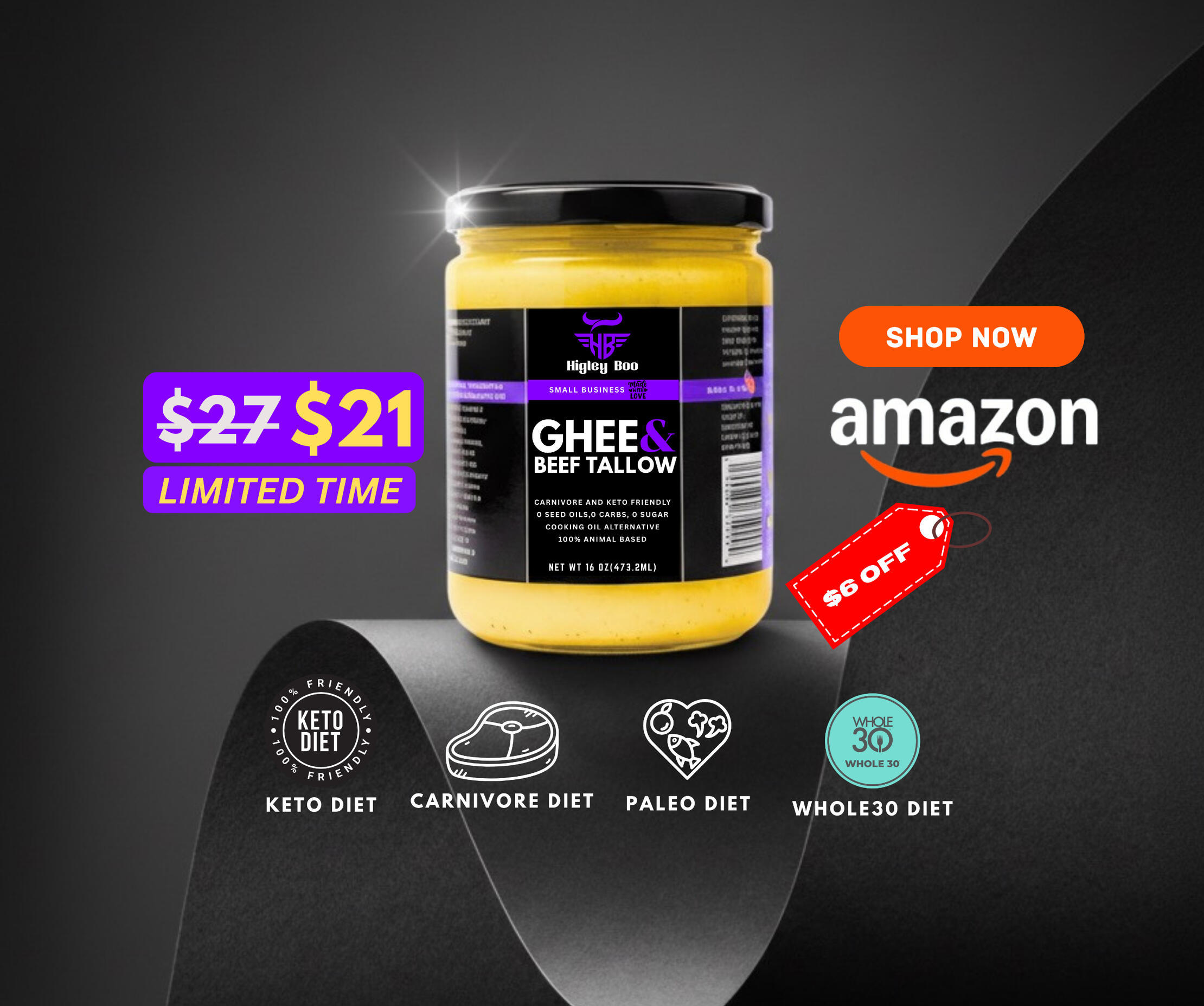 Grab your Higley Boo Premium Ghee and Beef Tallow jar for just $21 (regularly $27), Order today and save $6.